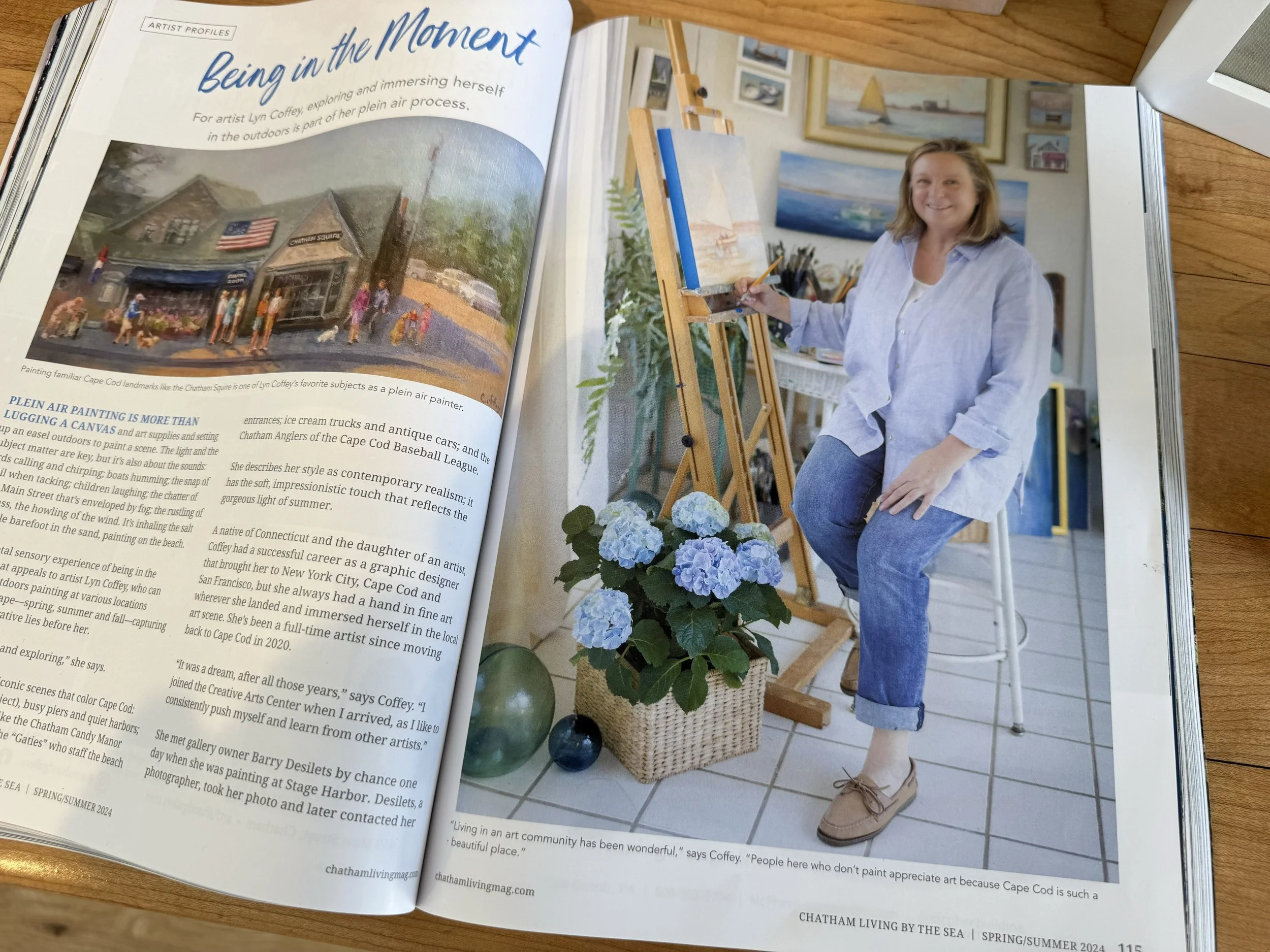 Lyn Coffey grew up in an artistic household and has been painting since early childhood. She received her BFA at Parsons School of Design in NYC. Working professionally as a graphic designer has greatly influenced her fine art. Painting intuitively en plein air has become an important part of her process. When observing daily life or creating a narrative, capturing a true sense of place is inherent. Thoughtful loose mark-making along with the effect of light depicts the atmosphere of the day and gesture of the figure. As an award winning artist she has been working exclusively in oil with a focus on coastal landscapes since moving to Cape Cod in 2020. Lyn maintains a working studio in Cotuit and can be found painting on location throughout New England.